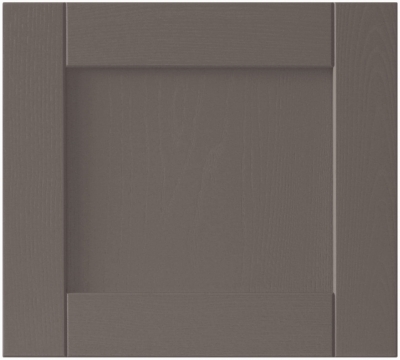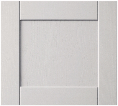 Большое количество мебели потребовало зонирования помещения по цвету отделки фасада. Были использованы два варианта: молочно-белый Космик Латте и монохромный тёмно-серый Минерал. Стилистика современной кухни из массива находится в русле современных мебельных трендов. Двери — рамочной конструкции с плоской вставкой-филёнкой. Накладки — плоские с вертикальной фрезеровкой.